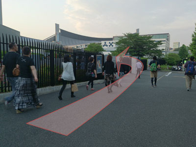 敷地に入ったら直進します。代々木体育館の特徴的な屋根が目の前に見えているので、だいたいわかると思います。