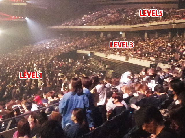 レベル3は29列目まであるが、1列目から11列目まではアリーナ後方の引き出し式になっているため、使うかどうかは公演によって異なる。この引き出し席を使わない場合、レベル3は12列目が最前列となる。
